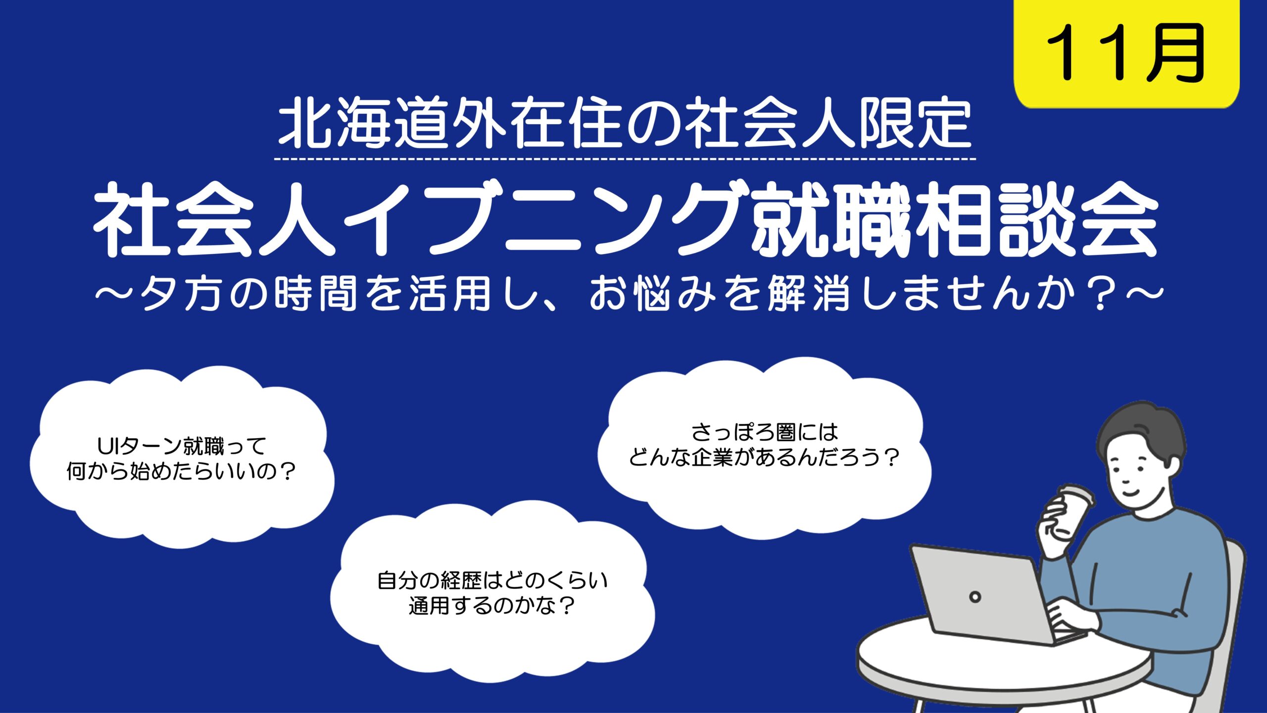 「社会人イブニング就職相談会」 転職に関すること、移住に関すること、なんでもご相談ください。